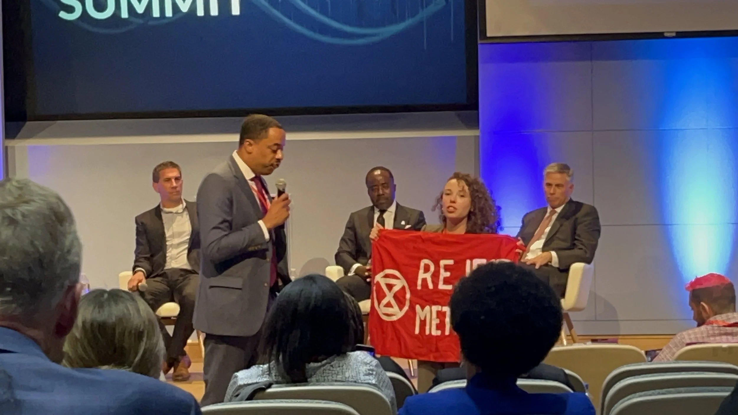 Rebels first disrupted the Chairman, asking him to commit to a methane-free future. In the afternoon, two rebels disrupted the Washington Gas spokesperson during a panel on the future of clean energy in the District, preventing the Washington Gas executive from spewing dangerous disinformation about methane gas. The action was part of XR DC’s ongoing End Methane, Electrify DC campaign, which aims to stop Washington Gas’s deadly methane gas pipeline projects and end methane gas use in the District for good.